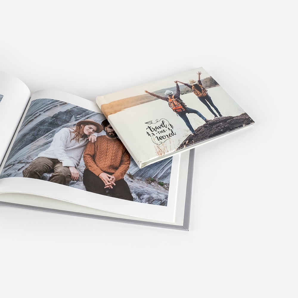 Os Álbuns Press da Dreambooks possuem capas duras feitas de cartão rígido, que são totalmente personalizáveis. As capas são tradicionalmente fotográficas, permitindo a personalização completa com fotografias, textos ou cliparts na capa, contracapa e lombada. A impressão inclui uma laminação matte, que confere um toque e impacto premium, elevando a aparência e a durabilidade do Álbum Press.